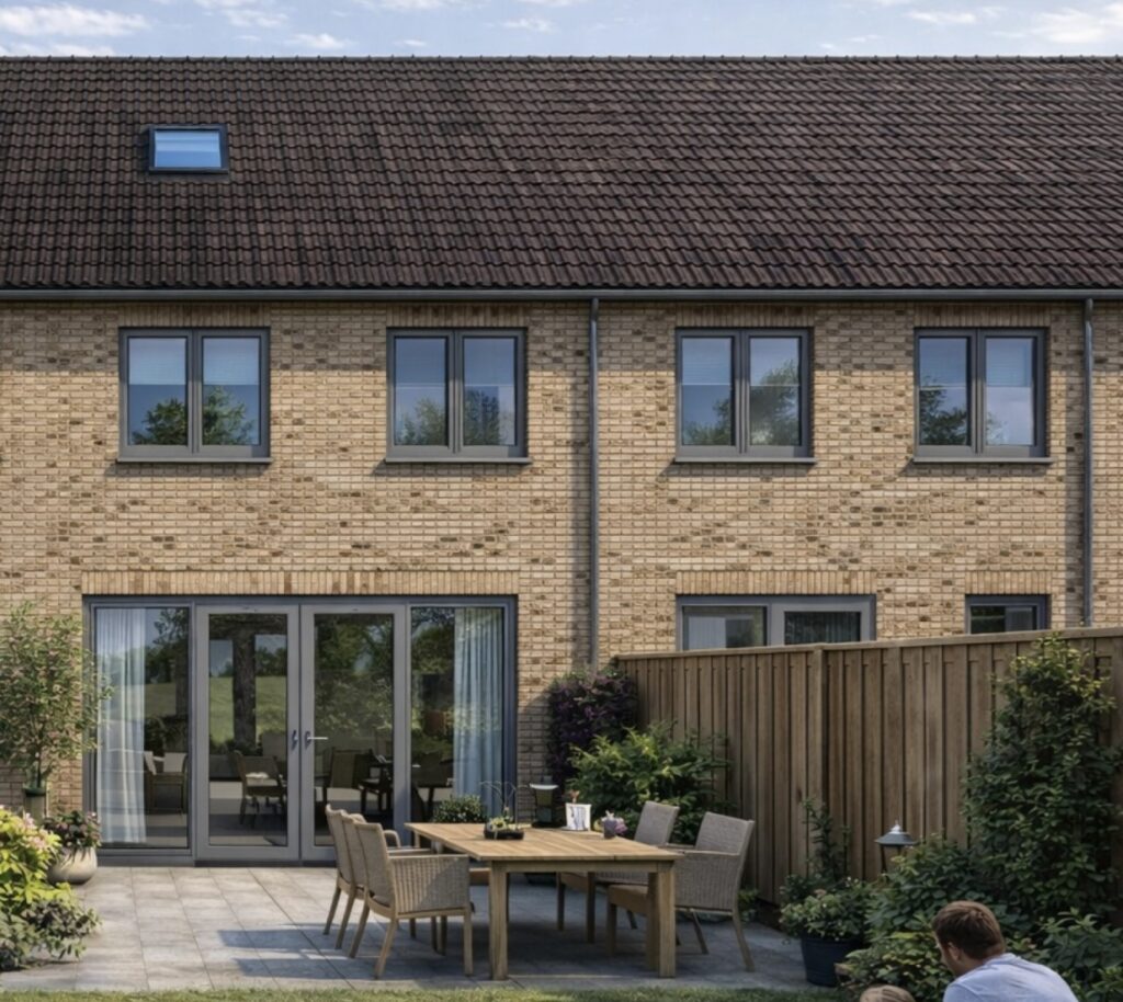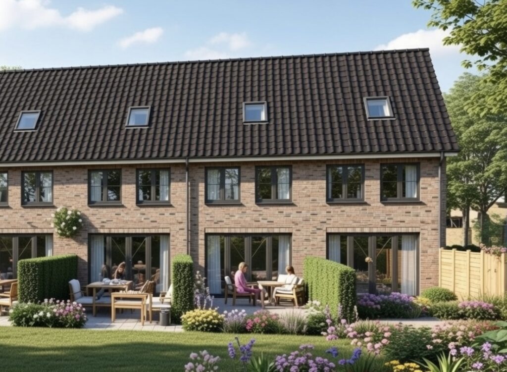Uitgerust met een Warmtepomp (Dus gasloos). Ook is Iedere woning middels en achterom te bereiken